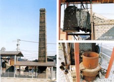 鋳物づくりの行程の中で、地金を溶解する際の新式溶解炉で、大正13年(1924)に建てられたもの。風を人力から風車で送る、その送る風は地金を溶解した煙で熱する等、近代化が図られた。