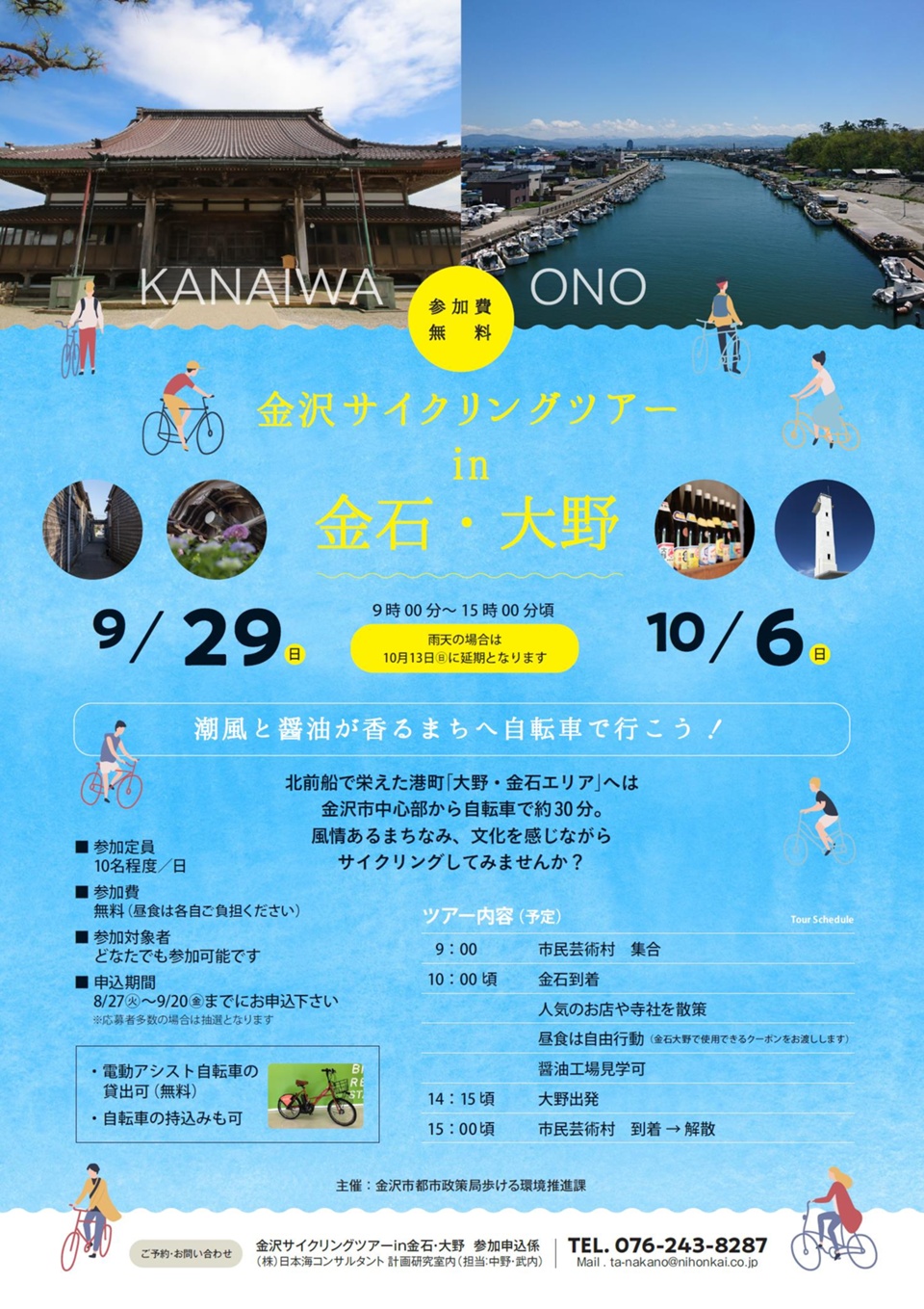 北前船で栄えた港町「大野・金石エリア」へは金沢沢市中心部から自転車で約30分。