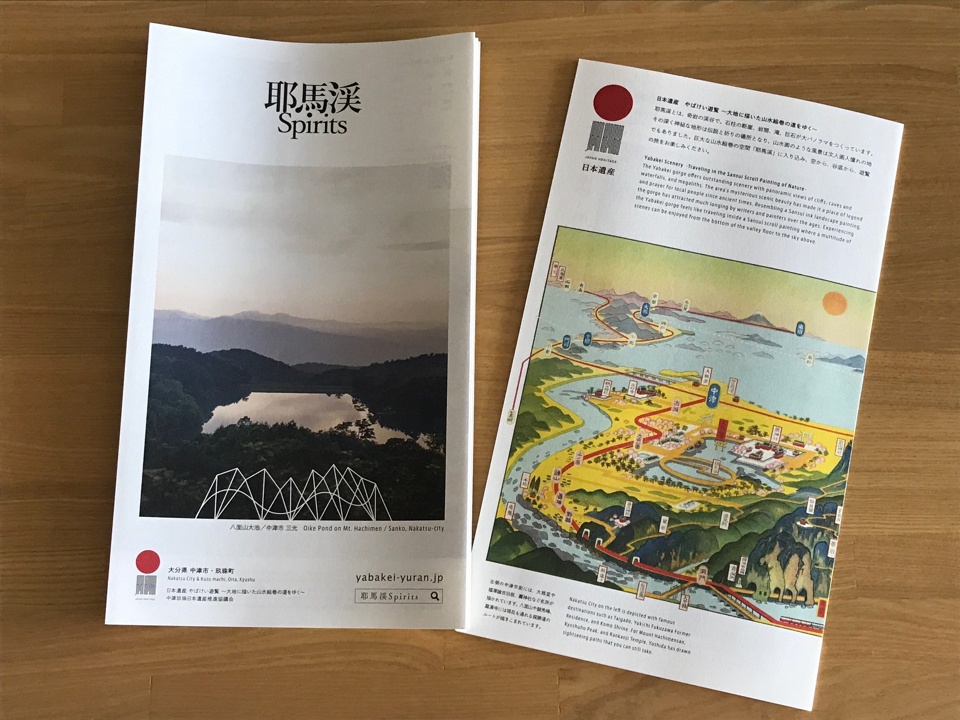 裏面の吉田初三郎の鳥瞰図(大正15年)をひろげて、耶馬渓の旅をお楽しみください。