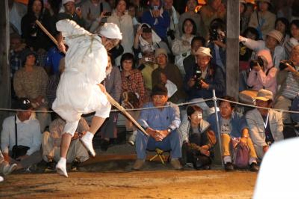 火の粉散らす天下の奇祭で、起源や由来は一切不明の火祭り。