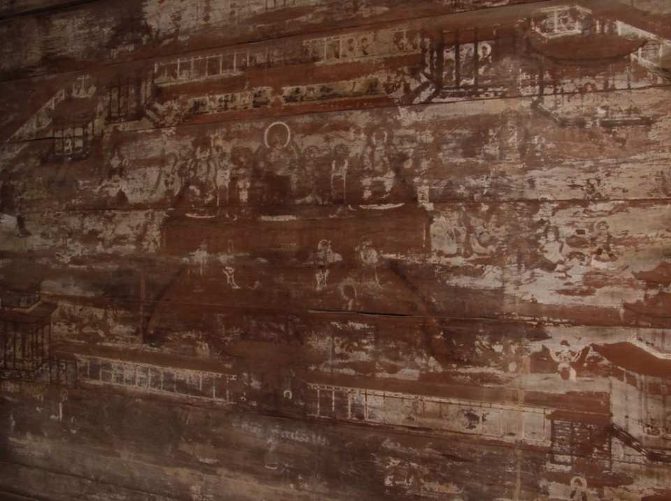 「九州最古の木造建造物」として国宝に指定されている富貴寺大堂にある壁画は、須弥壇(しゅみだん)背後の壁や柱、長押(なげし)などに極楽浄土の世界や文様が極彩色で描かれていました。