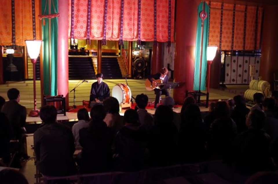 当日は定員60名以上の方が県内外からおこし下さりました。羽黒山頂にある「出羽三山神社三神合祭殿」において、夜間の開催であり、ほのかな灯りの中で行われる演奏や能は、荘厳かつ幽玄なものとなりました。