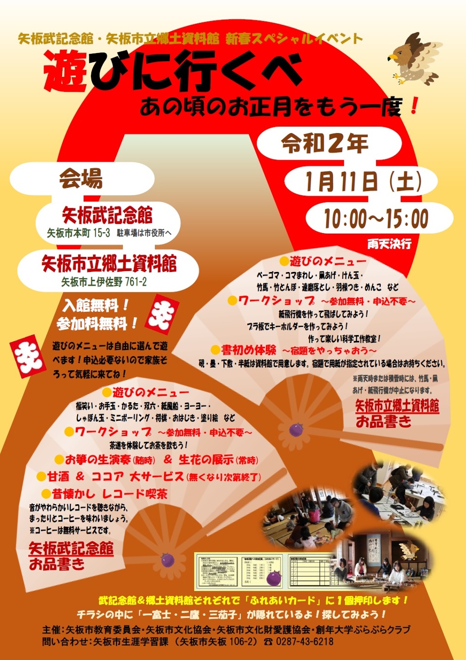 矢板武記念館、矢板市立郷土資料館で「遊びに行くべ~あの頃のお正月をもう一度~」を開催します。