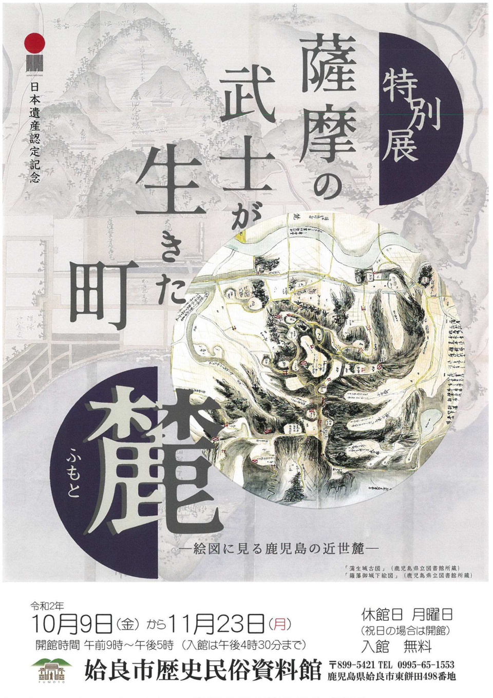 日本遺産認定を記念して、令和2年10月9日(金)から11月23日(月)まで、姶良市歴史民俗資料館にて特別展「薩摩の武士が生きた町 麓 -絵図に見る鹿児島の近世麓ー」が開催されます。詳細につきましては、添付資料を御参照ください。