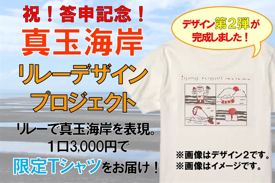 真玉海岸の登録記念物(名勝地関係)への登録答申を記念して、県内のデザイナー様に協力いただき、Tシャツのリレーデザインプロジェクトを立ち上げました。