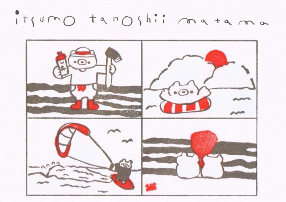 デザイン2は、chami様(国東市国見町)が消しゴム判子で制作していただきました。13個の判子を組み合わせて、四季折々で様々のレジャーが楽しめる真玉海岸を表現してくれました。