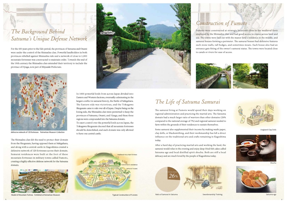 日本遺産「薩摩の武士が生きた町~武家屋敷群「麓」を歩く~」の英語版パンフレットを作成しました。下記よりPDFでご覧いただけますので、ぜひご活用ください。なお日本遺産「薩摩の武士が生きた町」公式ホームページでは,英語のほか、中国語、韓国語でもご覧いただけるようになりました。こちらも下記アドレスから、言語を切り替えてご活用ください。
