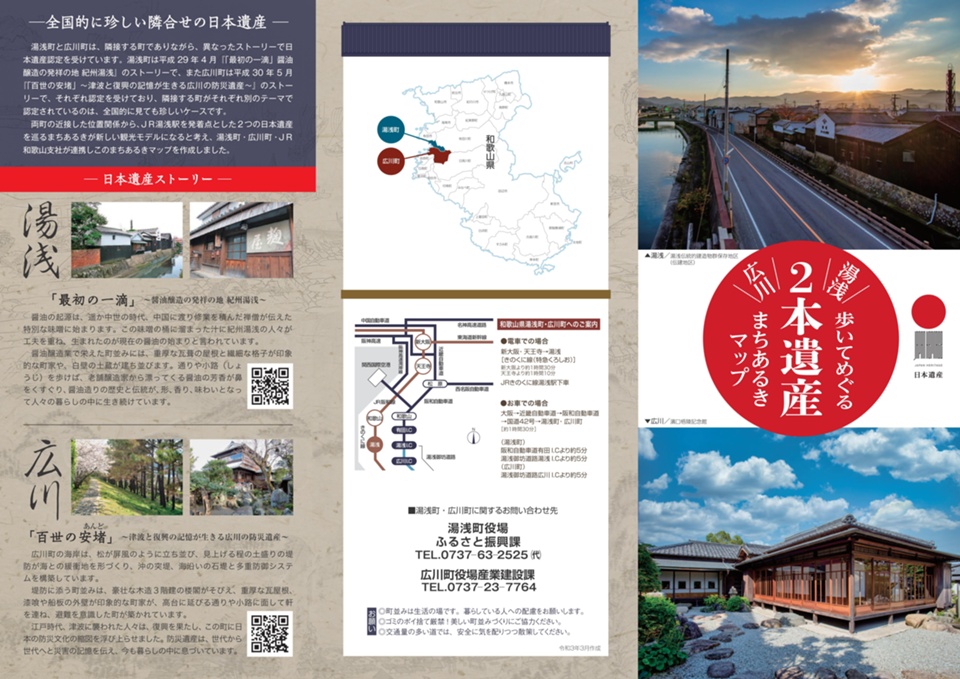 湯浅町は平成29年(2017年)に醤油醸造発祥の地(「最初の一滴」醤油醸造の発祥の地 紀州湯浅)として、広川町は翌年の平成30年(2018年)に濱口梧陵の「稲むらの火」にちなんだ防災遺産(「百世の安堵」~津波と復興の記憶が生きる広川の防災遺産~)として、日本遺産に認定されています。