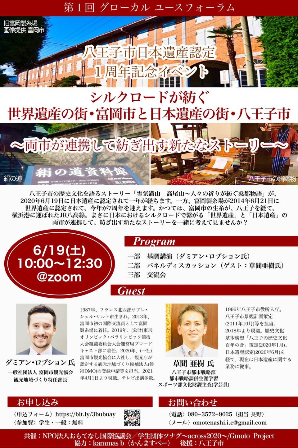 <第1回 グローカル ユースフォーラム 八王子市日本遺産認定1周年記念イベント シルクロードが紡ぐ世界遺産の街・富岡市と日本遺産の街・八王子市 ~両市が連携して紡ぎ出す新たなストーリー~>