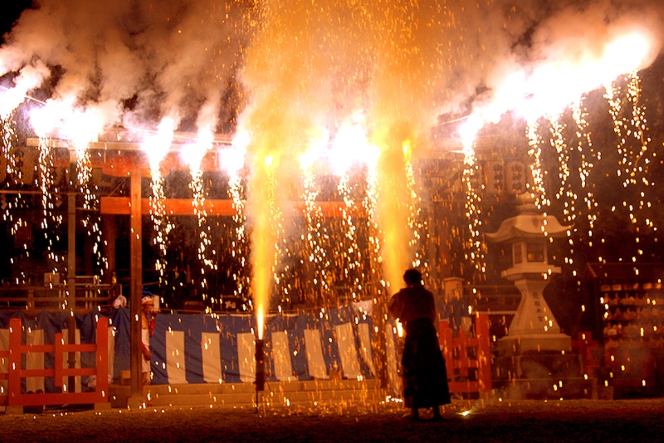 また、午後9時からは神社の神職の人々による手筒花火の奉納も行われます。