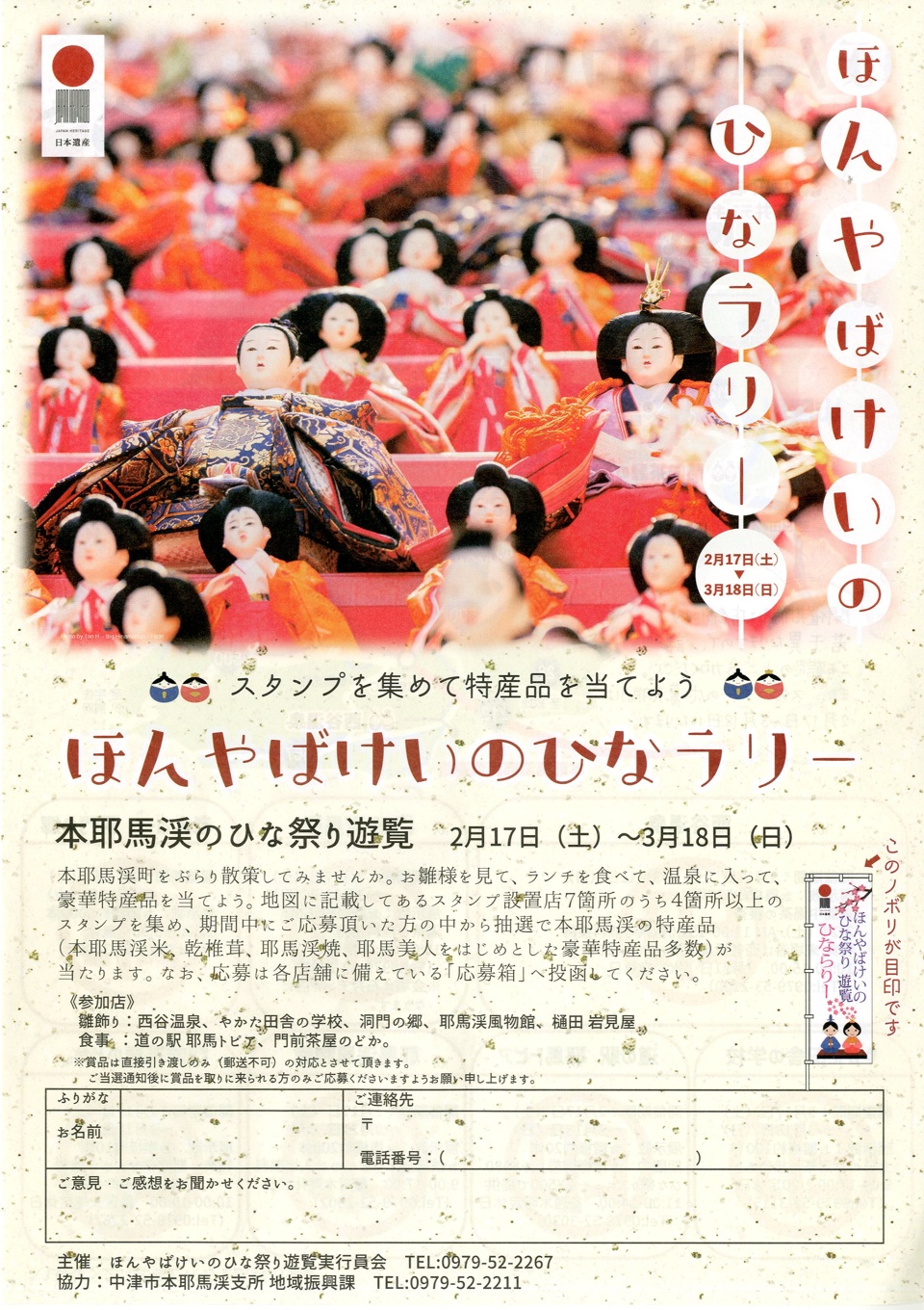 中津市本耶馬渓町で「ひなラリー」が始まります。
