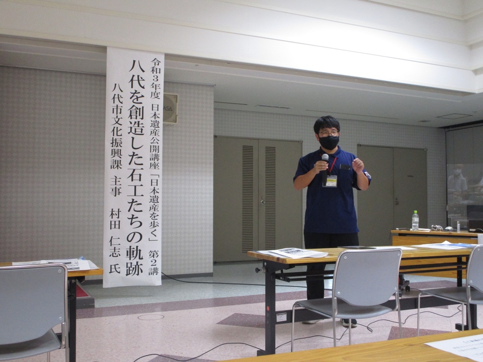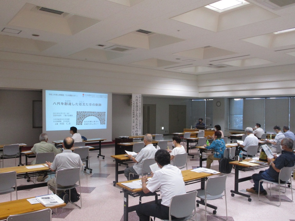 8月5日(木)、日田市役所7階大会議室にて、公開講座「日本遺産を歩く」の第2講「八代を創造した石工たちの軌跡」を開催しました。講師は、八代市文化振興課 村田 仁志 氏でした。