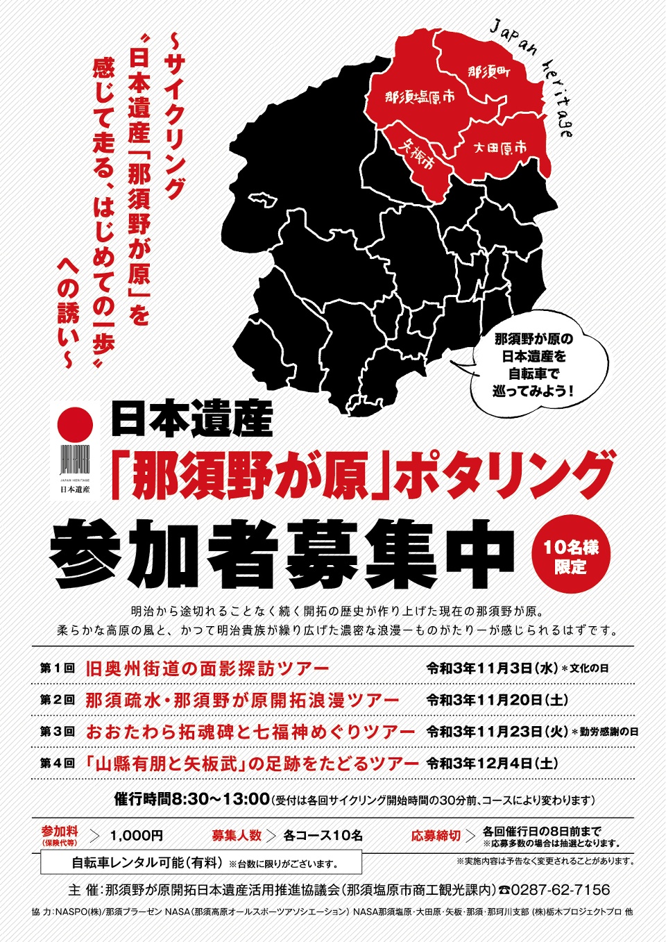 「那須野が原開拓浪漫譚」のストーリーを構成する文化財と、那須野が原の魅力スポットを巡るサイクリングツアーを開催します。