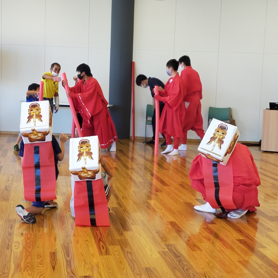 こどもたちは、段ボールで作ったオリジナルの獅子頭を使い、楽しみながら体験学習をしてもらいました。次回の開催は10/30の予定です、ぜひ参加してくださいね。