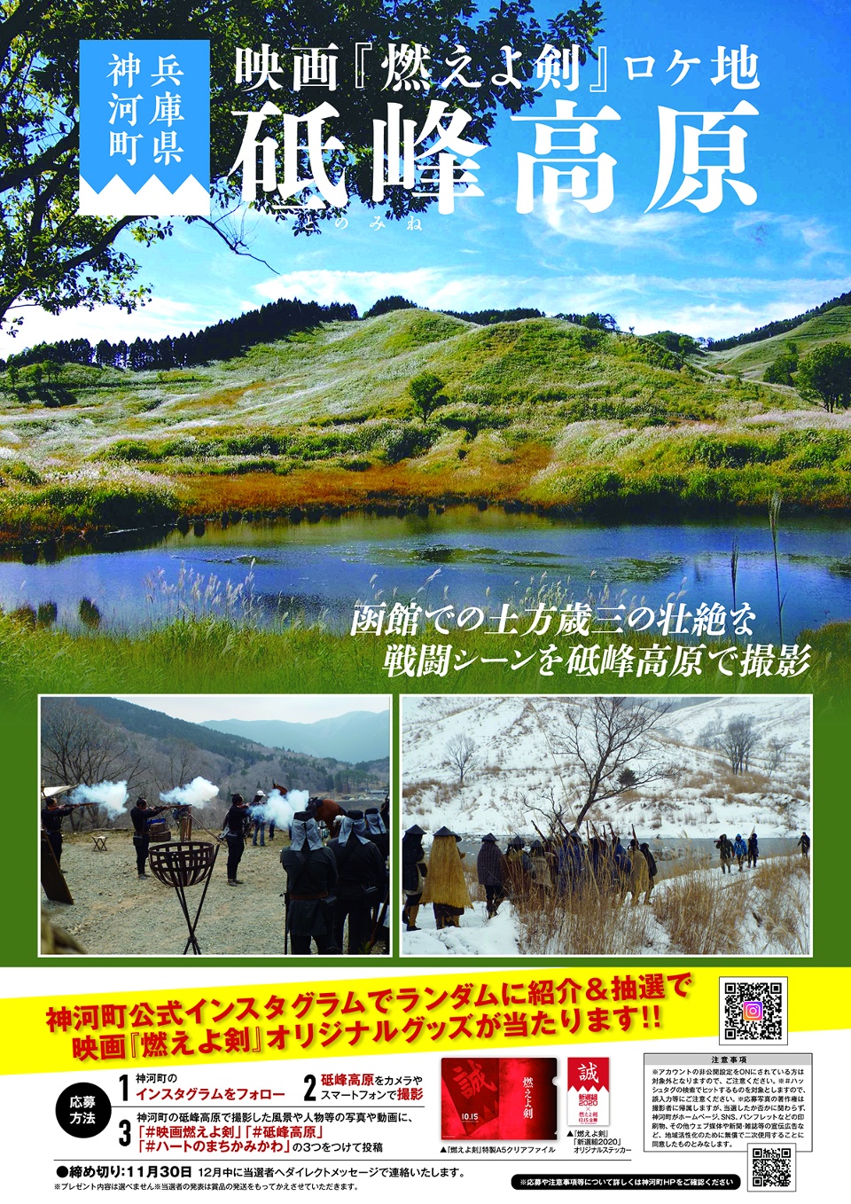 2021年10月15日公開の映画「燃えよ剣」のロケ地に神河町の砥峰高原が使用されました。