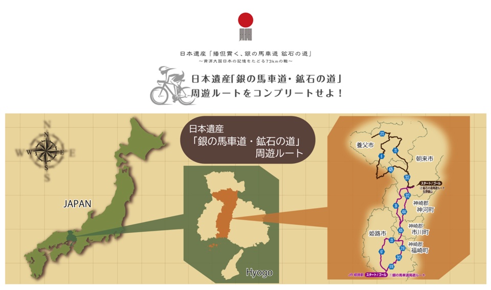 「ひょうごサイクリングモデルルート」の1つ、全長222kmの“日本遺産「銀の馬車道・鉱石の道」周遊ルート”のコンプリートを目指せ!!