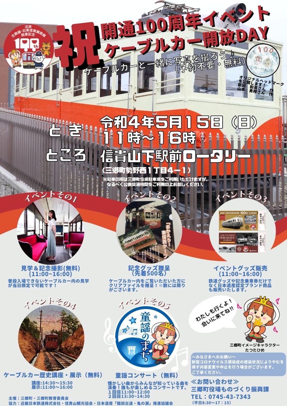 生駒線(王寺~信貴山下間)と東信貴鋼索線の開通100周年を記念し式典とイベントを行います!