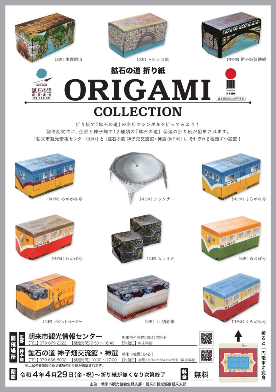 皮切りイベントとして、鉱石の道の名所やシンボルの折り紙が無料で配布される「鉱石の道を折り紙でつなぐ〜ORIGAMI COLLECTION〜」が開催されます。