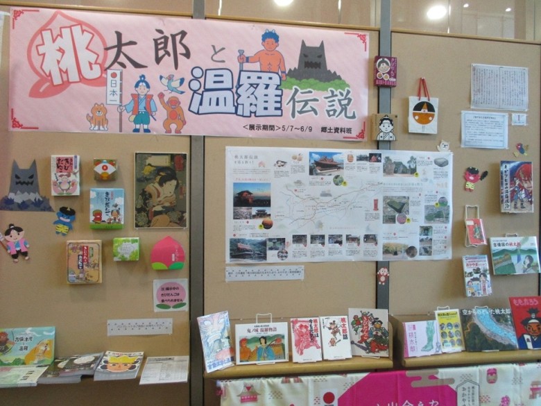 桃太郎の絵本など桃太郎と温羅伝説に関する資料をたくさん展示していますので、この機会にぜひ足を運んでみてください。