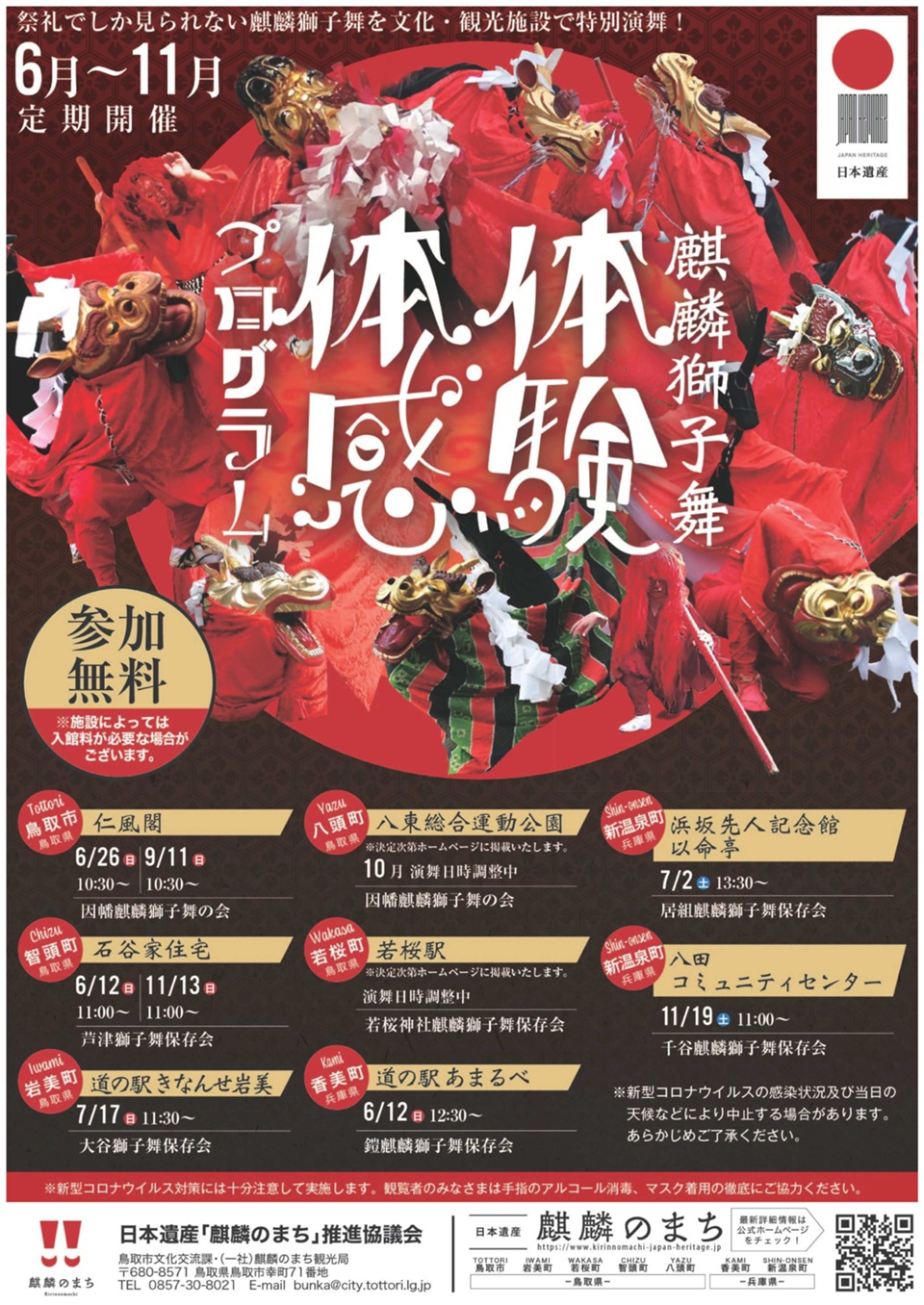 7/17 麒麟獅子舞体験体感プログラムを開催します!(道の駅 きなんせ岩美)