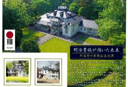 オリジナルフレーム切手「明治貴族が描いた未来~那須野が原開拓浪漫譚~」は、構成文化財31件の中から、華族別邸を中心に、開拓や農場に関連が深い10件の文化財で構成されています。