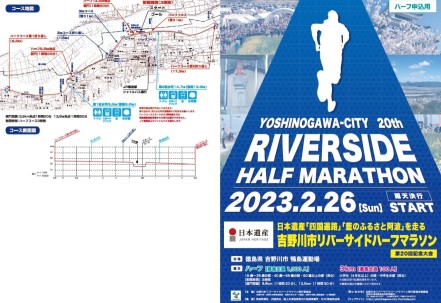 吉野川市は「四国遍路」「藍のふるさと阿波」の2つの日本遺産の認定を受けており、吉野川市リバーサイドハーフマラソンは、この2つの日本遺産の構成文化財とコースが重なっております。