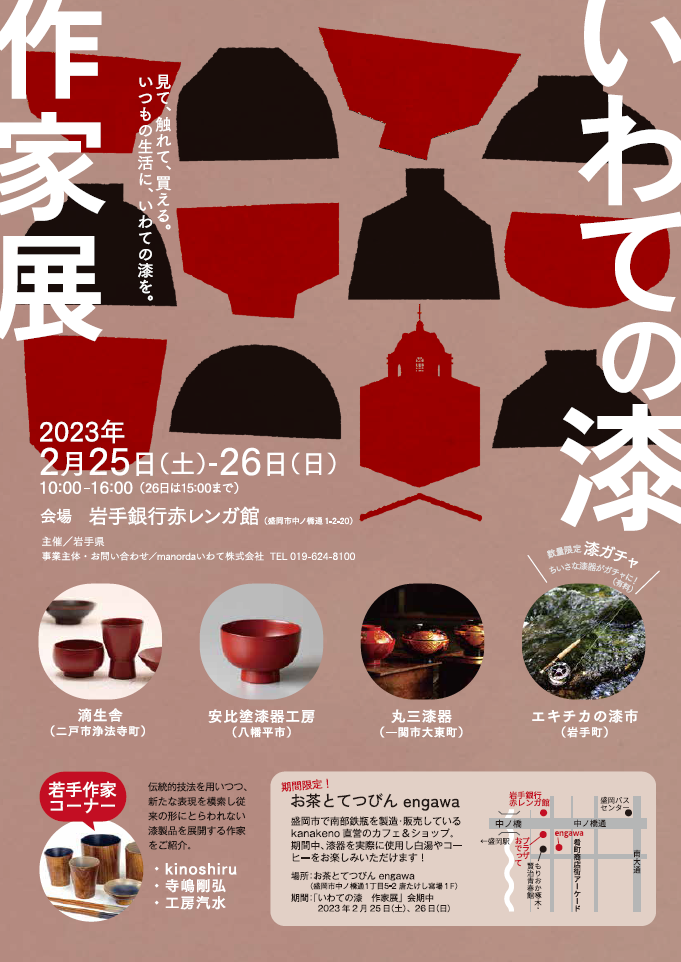 *二戸市の滴生舎、八幡平市の安比塗漆器工房からも出展いたします。
