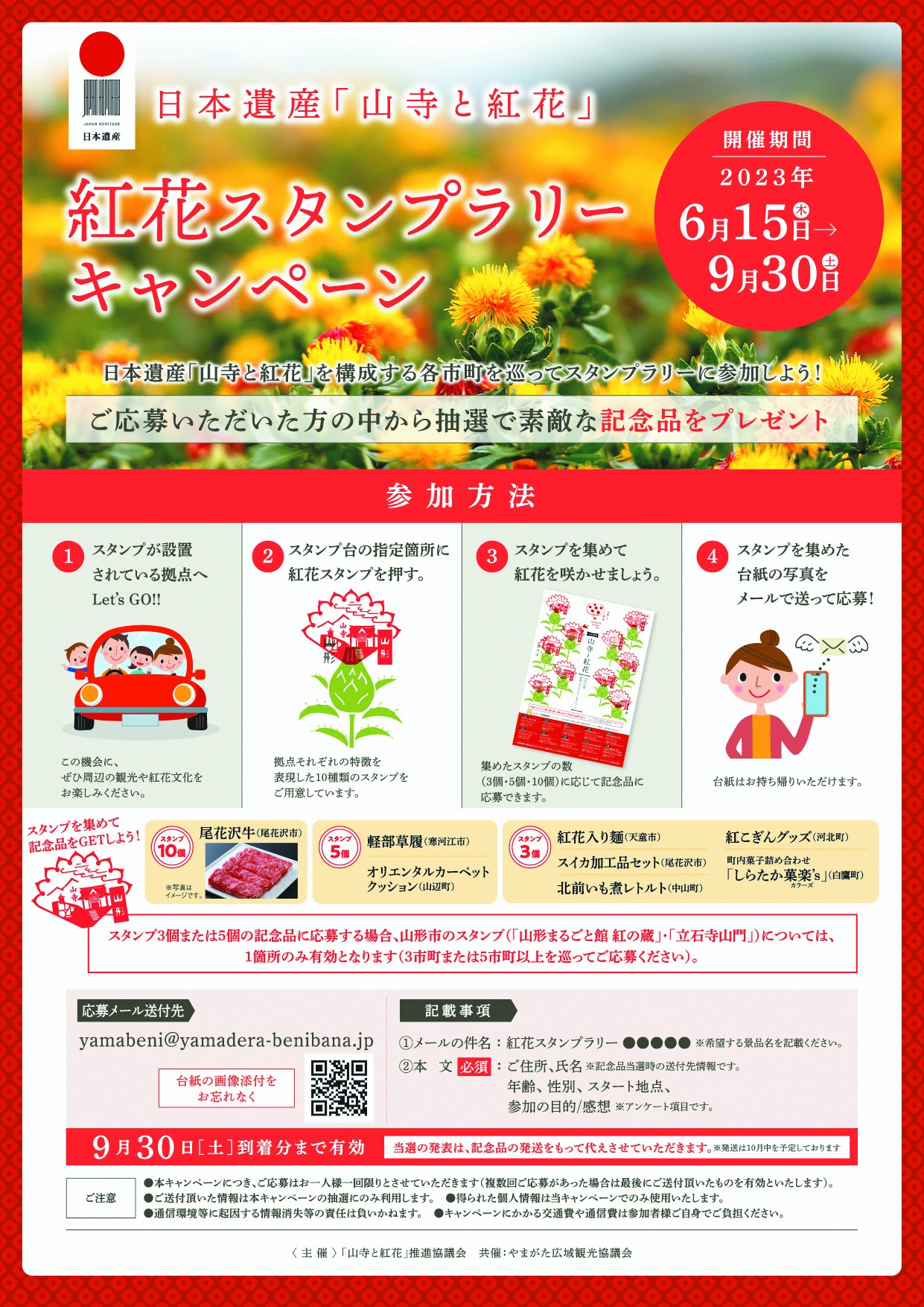 県内10か所のスタンプ設置場所にあるスタンプを集めて応募する紅花スタンプラリーキャンペーンがスタートしました!今年は少し早めのスタートとなりました。