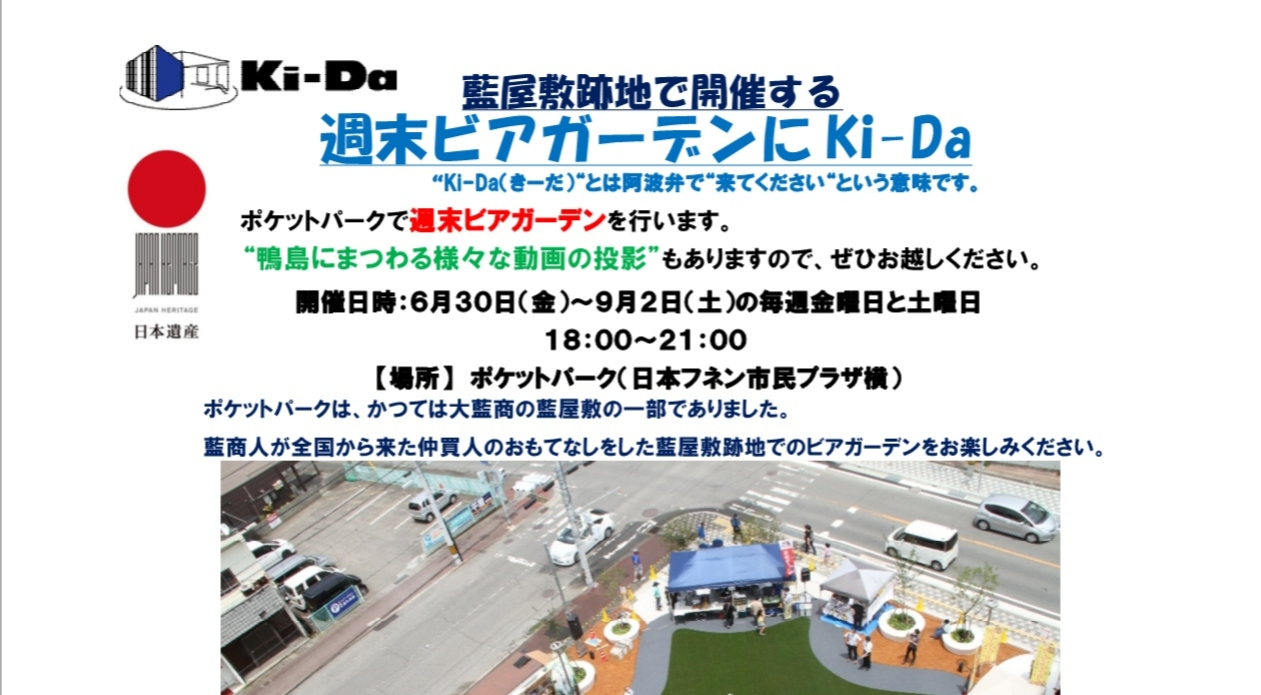 藍屋敷跡地で開催する 週末ビアガーデンにki-Da