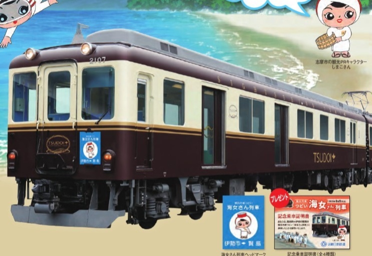 近畿日本鉄道は、志摩市観光協会などとの合同企画で、観光列車「つどい」による臨時列車「海女さん列車」を運転します。運転日は、2023年8月5日(土)、11日(金・祝)、12日(土)、19日(土)。運転区間は、賢島(10:35、13:36発)~伊勢市(11:28、14:25着)、伊勢市(12:21、15:16発)~賢島(13:13、16:14着)。停車駅は、鵜方、鳥羽、五十鈴川、宇治山田の各駅。ヘッドマークを掲出して運転します。車内にて、海女小屋の「いろり」の模型展示、あおさ汁の提供、海女着の着用体験、クイズ、抽選会などを実施します。乗車には、観光列車料金が別途必要です。料金は、大人510円、小児260円。近鉄主要駅の特急券発売窓口にて、各運転日の1か月前から発売します。特典として、記念乗車証(全4種類)などをプレゼント!定員は、各列車とも70人。