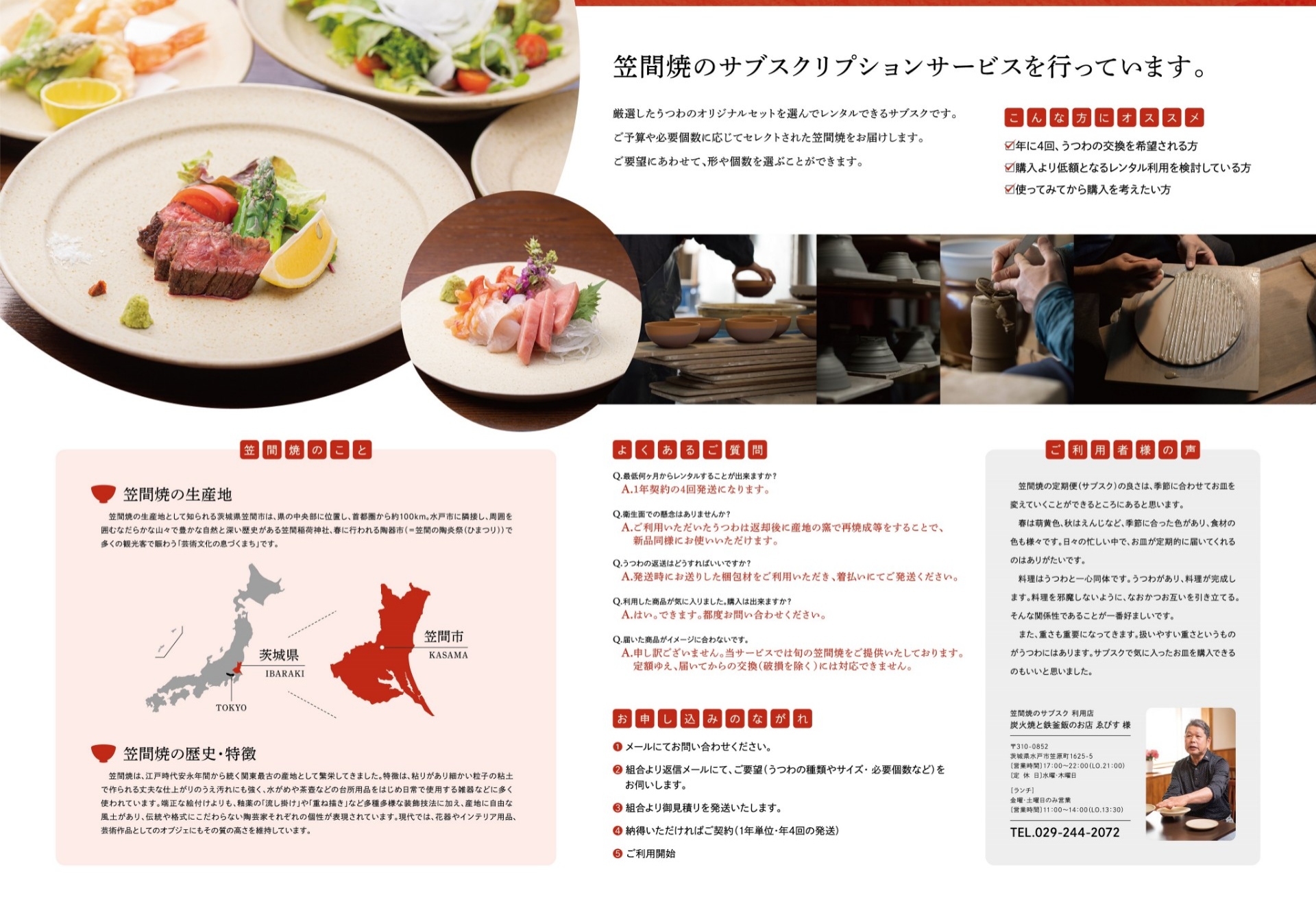 笠間焼誕生250年記念事業の一環として、笠間焼協同組合では定額料金で笠間焼を利用できる『笠間焼サブスクリプションサービス』を開始しました。