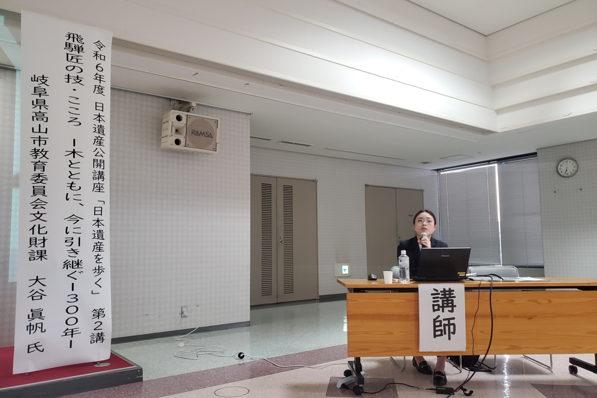 令和6年8月22日(木)、市役所7階大会議室で、世界遺産推進室公開講座「日本遺産を歩く」の第2講「飛騨匠の技・こころ -木とともに、今に引き継ぐ1300年-」を開催しました。講師は、岐阜県高山市教育委員会 文化財課 大谷 眞帆 氏でした。