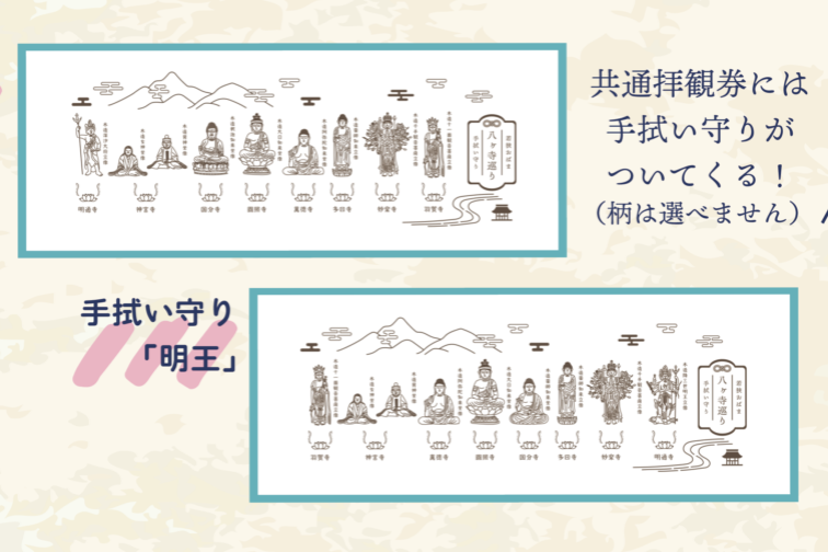 福井県小浜市を代表する八つのお寺を巡ることができる手拭い守り付き共通拝観券を販売いたします。