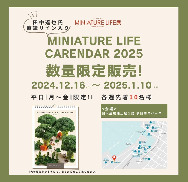 現在旧大連航路上屋にて開催中のMINIATURE LIFE展ー田中達也 見立ての世界ーにて田中達也氏サイン入りのカレンダー限定販売を行います!