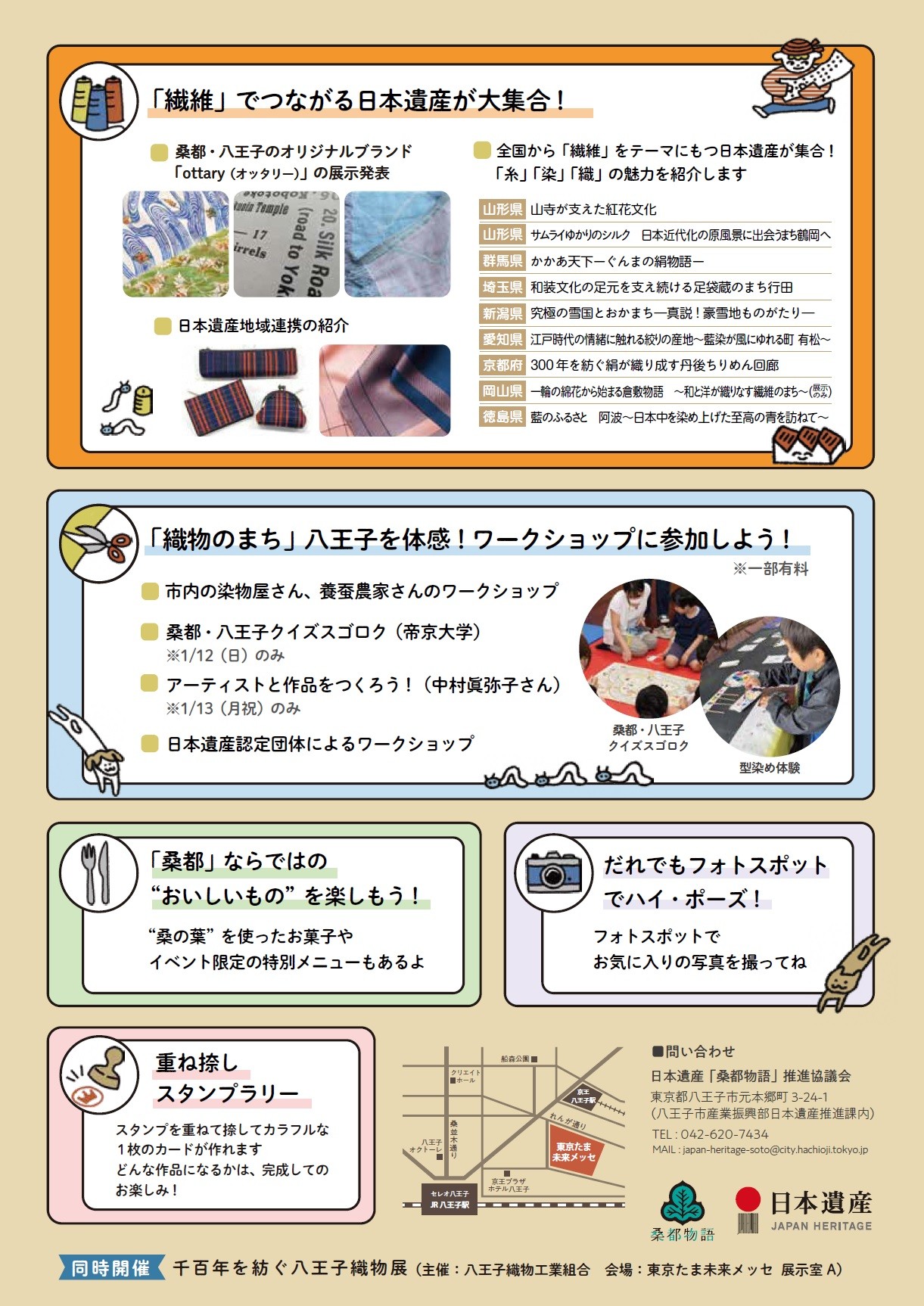 1月12日(日)、13日(月・祝)の2日間、東京都八王子市の「東京たま未来メッセ」にて「日本遺産・桑都フェスタ2025」が開催されます!