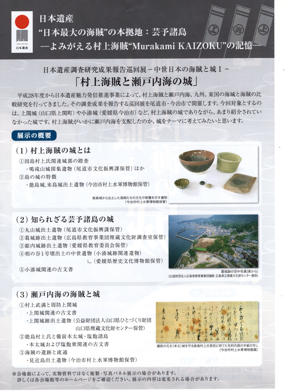日本遺産村上海賊尾道今治巡回展「村上海賊と瀬戸内海の城」の開催