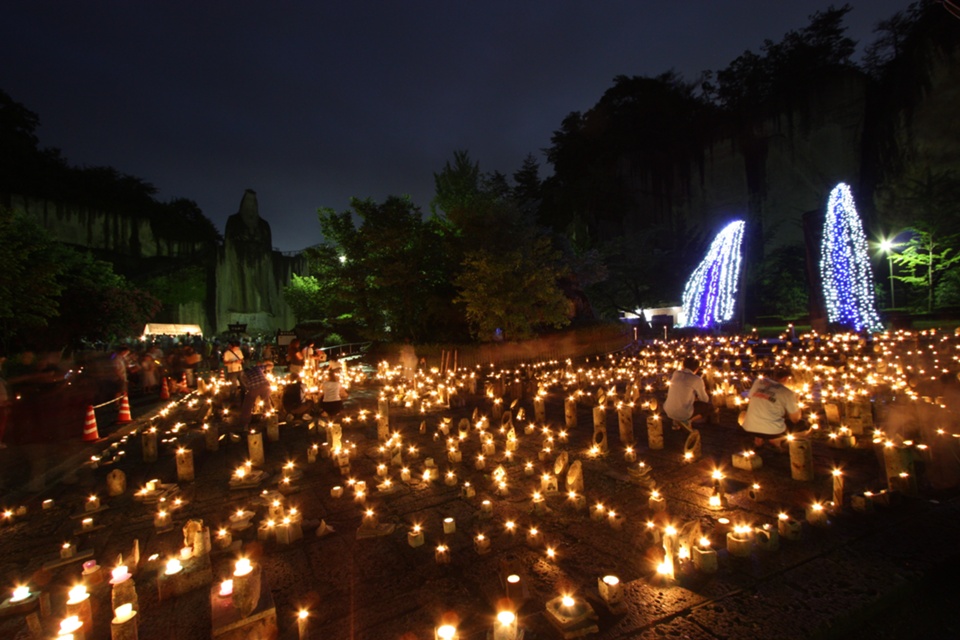 ※ 写真は昨年平和観音前で開催した「大谷石夢あかり」の様子です。