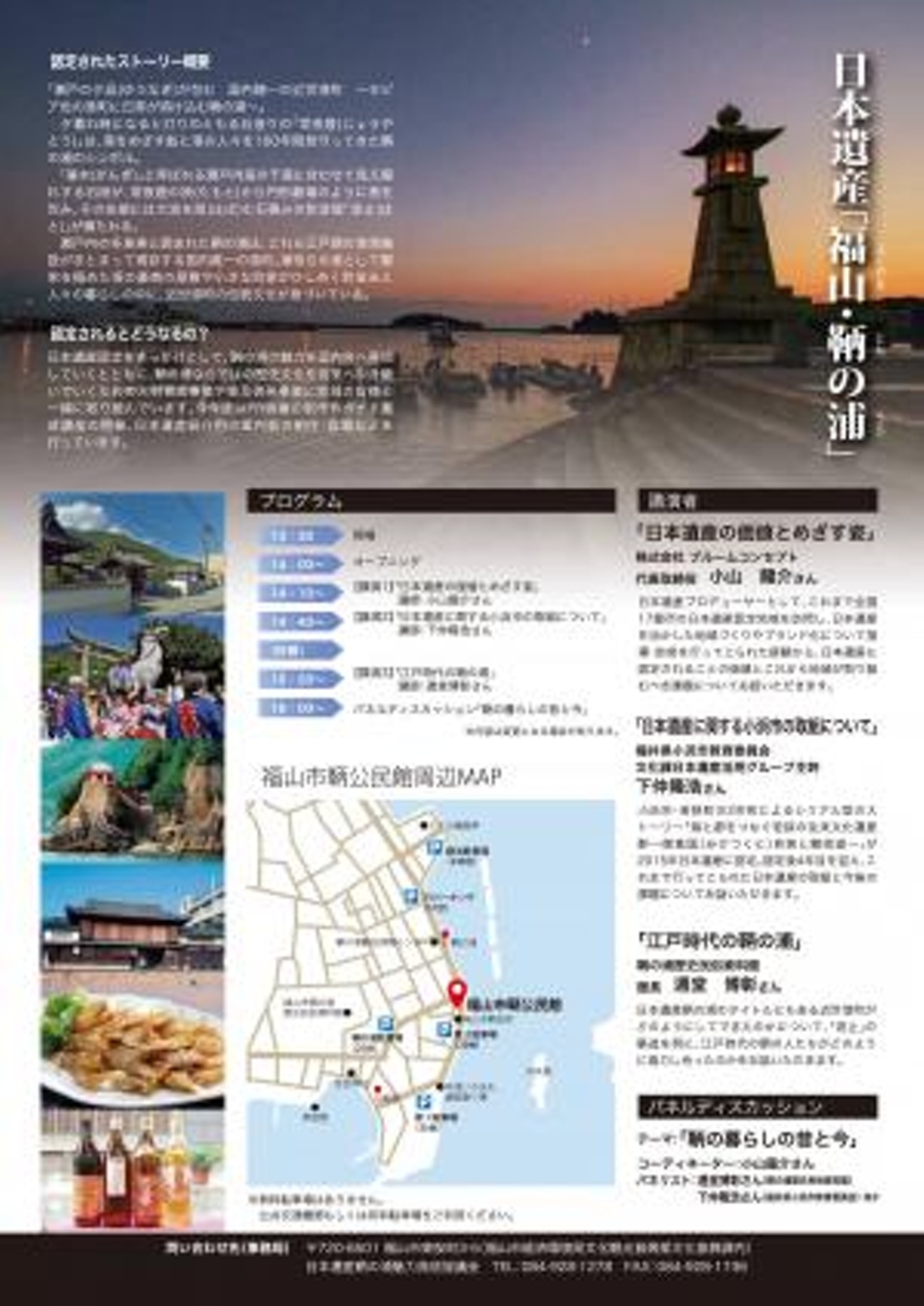 問合せ先:084‐928-1278(日本遺産鞆の浦魅力発信協議会)