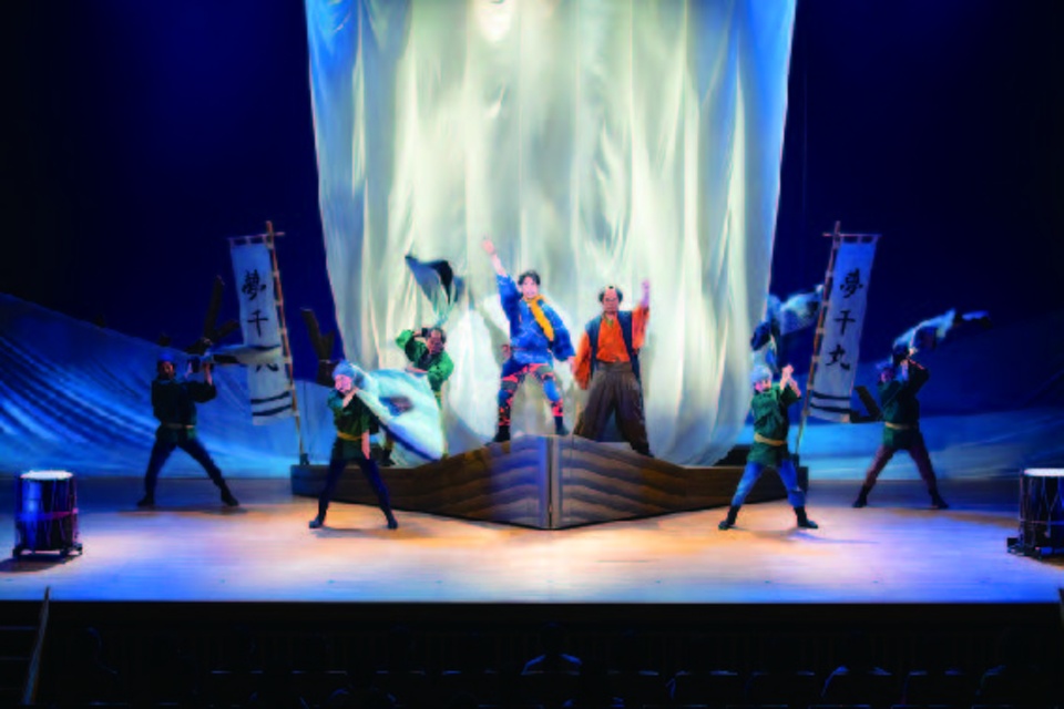 幕末の日本を舞台に、北前船に生活物資と野望を乗せた男たちの魂を描くミュージカル「北前ザンブリコ」。