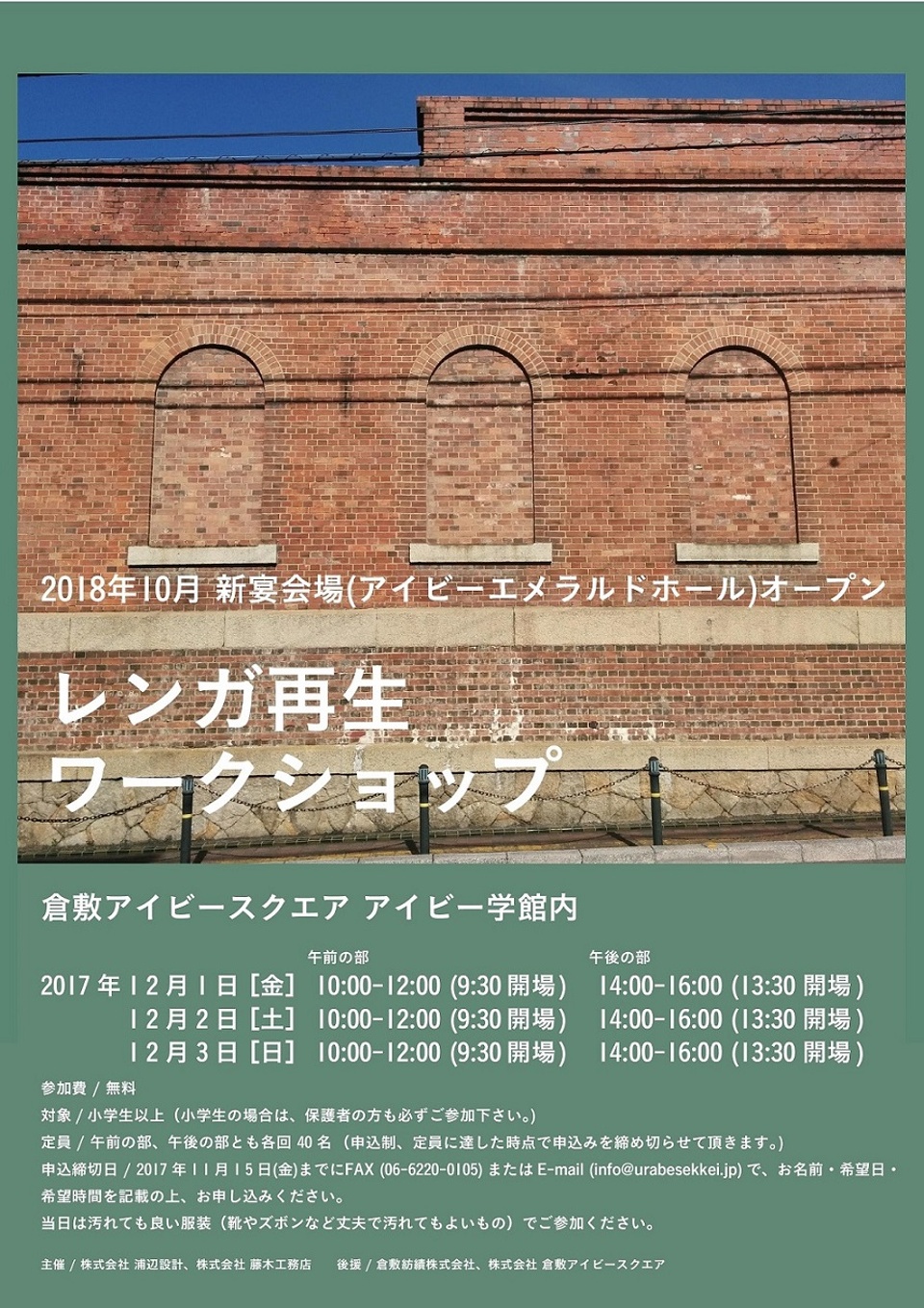 近代化産業遺産・日本遺産構成文化財の「倉敷アイビースクエア」で、12月1日(金)~3日(日)にレンガ再生ワークショップが開催されます。