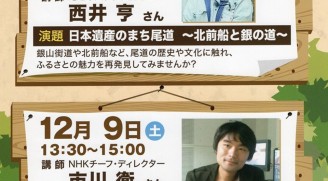 日本遺産のまち尾道に関する講演会が開催されます。北前船と石見銀山街道そしてNHK「ブラタモリ尾道編」のお話です。