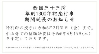 西国三十三所草創1300年記念行事 期間延長のお知らせ