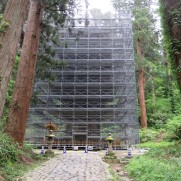 令和5年(2023年)から令和7年(2025年)春頃まで、羽黒山五重塔では杮葺(こけらぶき)屋根の改修工事が行われています。