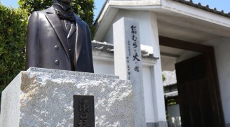稲むらの火の館入り口前に濱口梧陵翁生誕200年記念胸像が建立されました