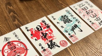 和水町観光スポットの御朱印帳風ノベルティ配布中!