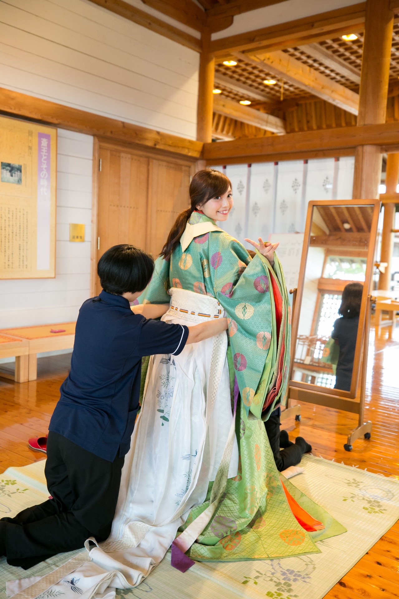 斎宮がもっとも栄えていたという平安時代の歴史、文化、技術を体験できる施設。「平安装束試着体験」では、当時の衣装を着て記念撮影も行えます(有料、要予約)。