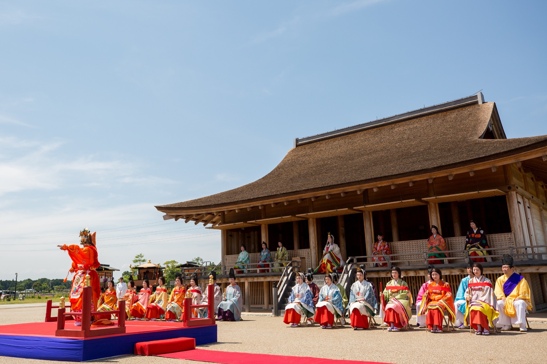 乾さん:斎宮の建物の屋根は、檜皮(ひわだ)葺きです。瓦は当時、仏教的なものと考えられており、仏教にまつわる言葉を「忌詞(いみことば)」としていた斎宮内には取り入れられませんでした。復元されたのは、西脇殿と正殿と東脇殿の3棟です。復元建物では、斎王まつりやコスプレイベントなども行われていますよ。