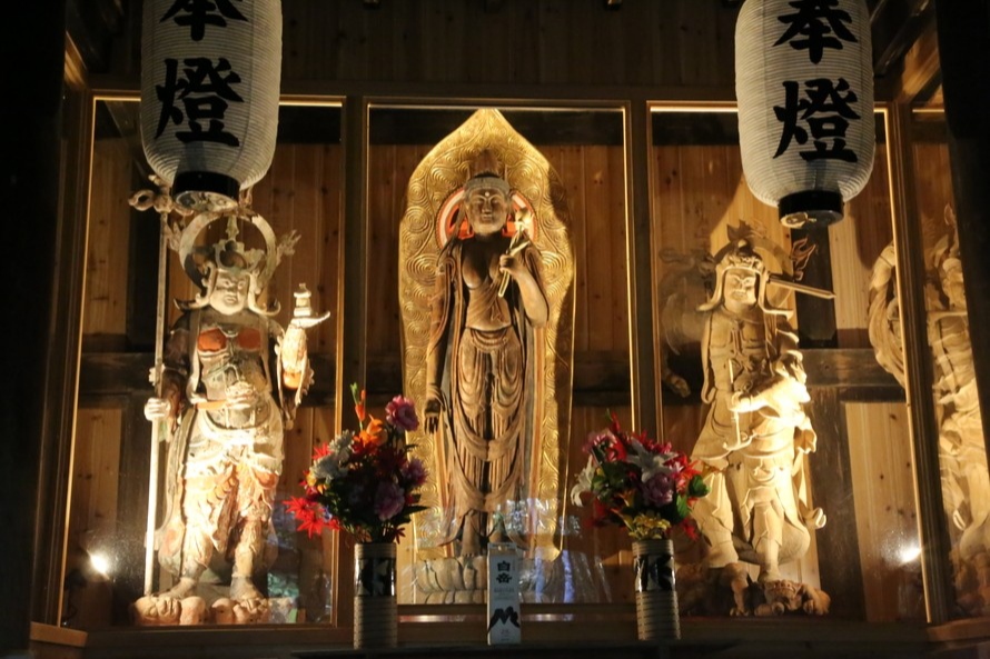 中山観音では、1000年以上前に造られた美しく厳かな観音様と四天王の像が見られます。