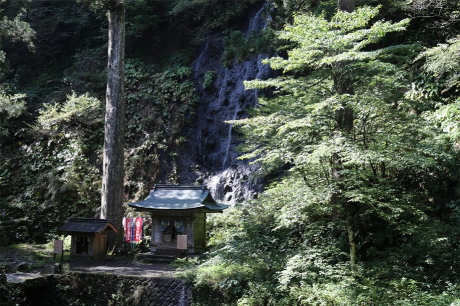 少し進むと、朱色の御神橋と川、そして滝が迎えます。かつては、ここで禊をし、穢れを祓ったうえで羽黒山に登ったため、この川は「祓川」と呼ばれます。