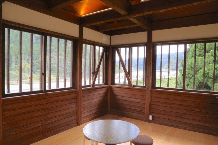 敷地内の船見番所からは最上川を眺められる。施設内で購入できるコーヒーをここで飲むのもおすすめ